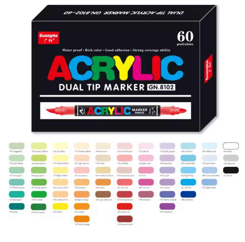 סט טושים אקריליים דו־צדדיים Guangna – 60 צבעים למקסימום יצירתיות