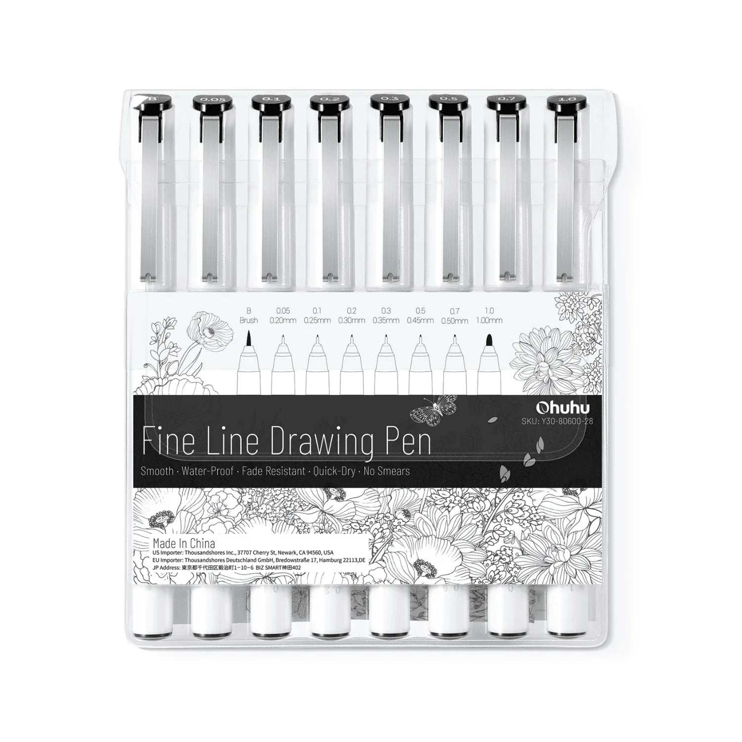 סט עטי דיוק Ohuhu Fineliner – 8 יחידות לציור, רישום וכתיבה