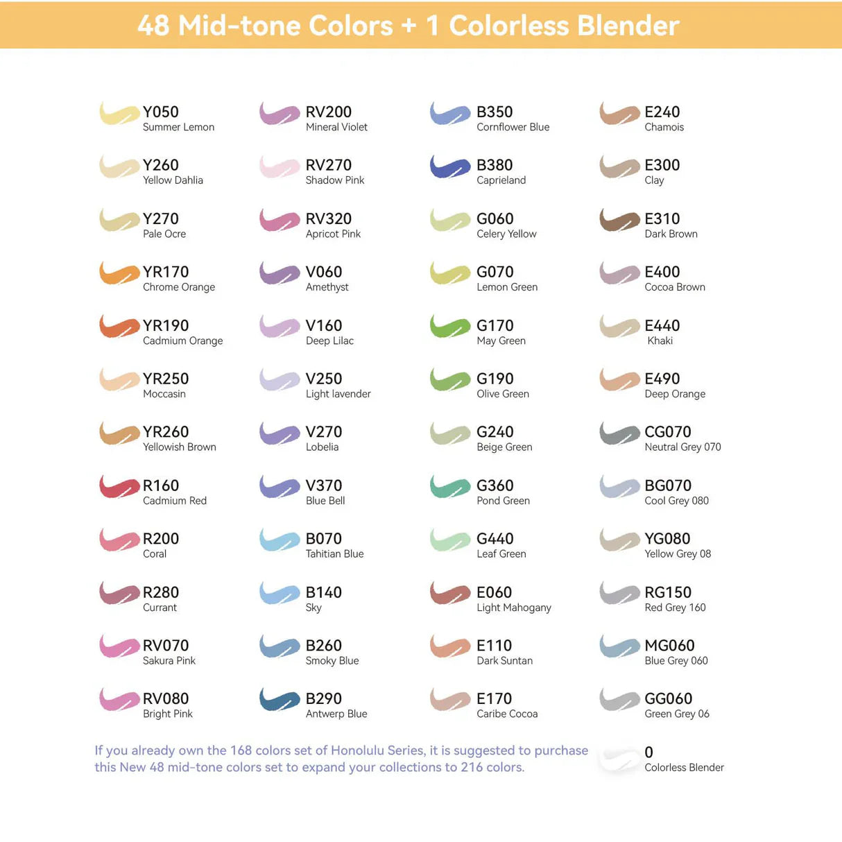 Ohuhu Honolulu 48 Mid-tone Colors Dual Tips Alcohol Art Markers